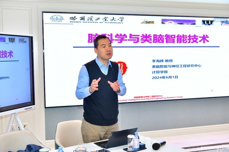 计算学部李海峰教授以“脑科学及类脑智能技术”为题,围绕“类脑”进行授课,通过讲解类脑研究的轮廓、类脑研究的主要思路、脑计划与脑机接口,为大家介绍了脑科学与类脑智能的关联,分享了人工神经网络的发展历史、理论体系以及脑科学与类脑研究的特点等方面的知识,呈现了人工智能与生命科学融合发展的广阔空间。